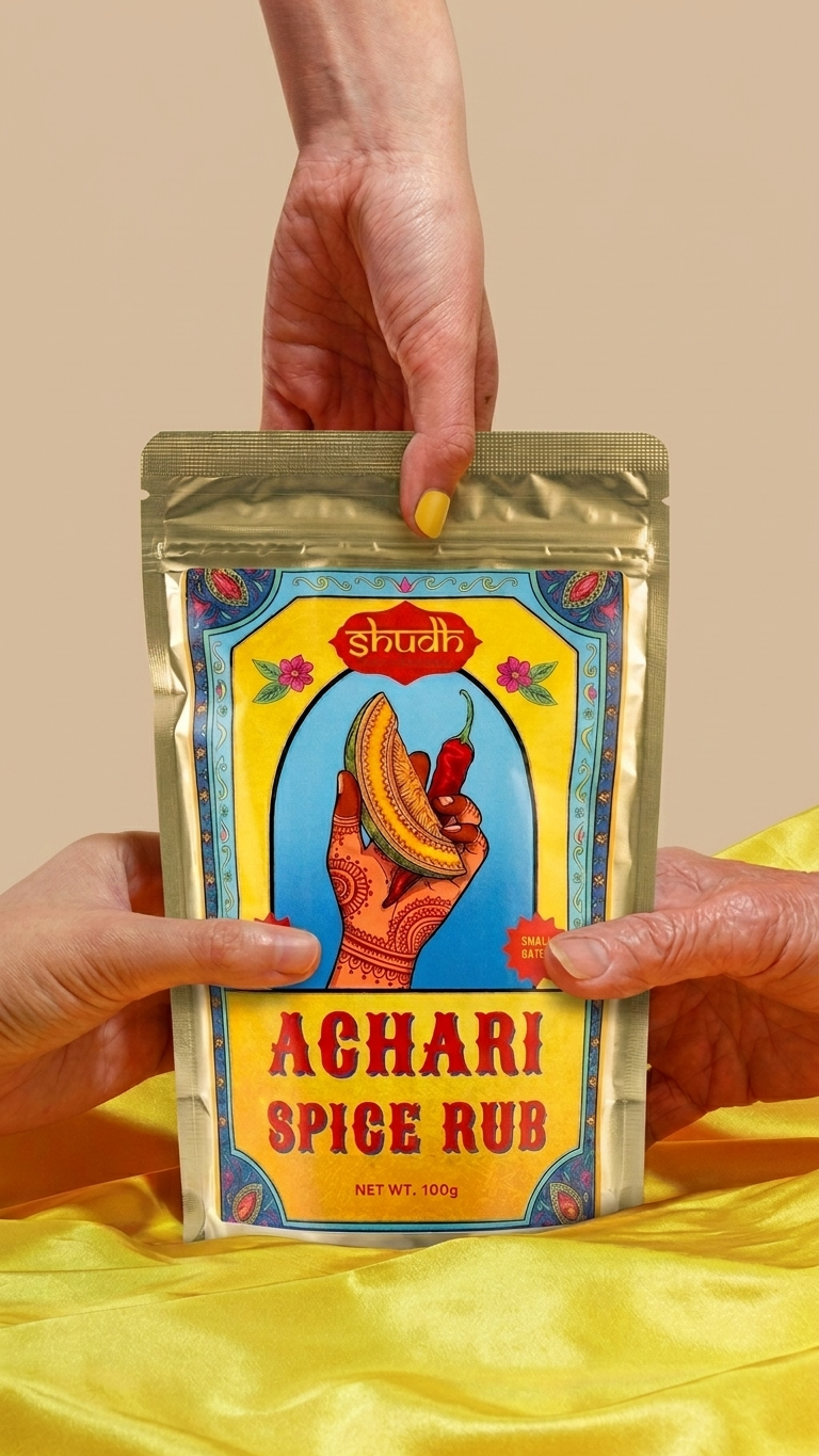 At Shudh, we grind our spices in-house — in small, intentional batches — so the natural oils stay alive. When you open it, you don’t just smell it. You feel it.